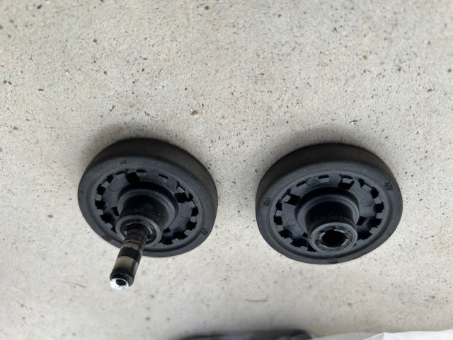 外したタイヤに出っ張りがあり、そのままタイヤをつけると、タイヤの取り付け部とタイヤが干渉して回らなくなる。(タイヤで挟み込む状態になる)